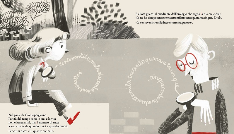 La storia ambientata nel Paese di Giornopergiorno trasforma il tempo in un elemento personale: nel villaggio gli appuntamenti non coincidono, i treni non partono in orario e gli aerei arrivano in momenti diversi per ogni passeggero. Una notte tutto si ferma e gli orologi ripartono da zero: gli abitanti devono imparare a contare nuovamente il tempo, comprendendo che la felicità non consiste nell’avere più ore, ma nel riempire il tempo di vita.